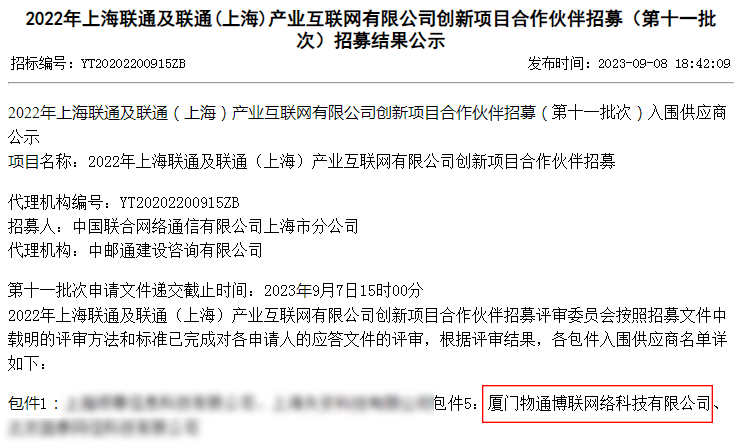 近日,上海聯(lián)通及聯(lián)通(上海)產(chǎn)業(yè)互聯(lián)網(wǎng)有限公司創(chuàng)新項(xiàng)目合作伙伴招募(第十一批次)入圍供應(yīng)商名單公示,我司成功入圍,物通博聯(lián)產(chǎn)品將在將在聯(lián)通供應(yīng)鏈平臺(tái)“公開市場(chǎng)”上架!