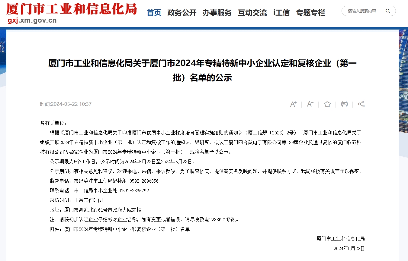 5月22日,廈門(mén)市工業(yè)和信息化局公布了《關(guān)于廈門(mén)市2024年專(zhuān)精特新中小企業(yè)認(rèn)定和復(fù)核企業(yè)(第一批)名單的公示》,廈門(mén)物通博聯(lián)網(wǎng)絡(luò)科技有限公司成功通過(guò)2024年度廈門(mén)市專(zhuān)精特新中小企業(yè)認(rèn)定。