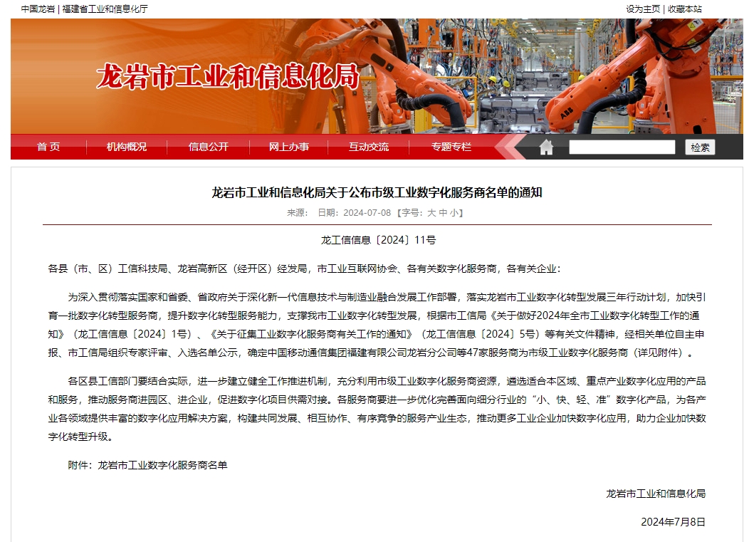 7月8日,龍巖市工信局公布了《龍巖市工業(yè)和信息化局關于公布市級工業(yè)數(shù)字化服務商名單的通知》,廈門物通博聯(lián)網(wǎng)絡科技有限公司成功入選“龍巖市市級工業(yè)數(shù)字化服務商”。