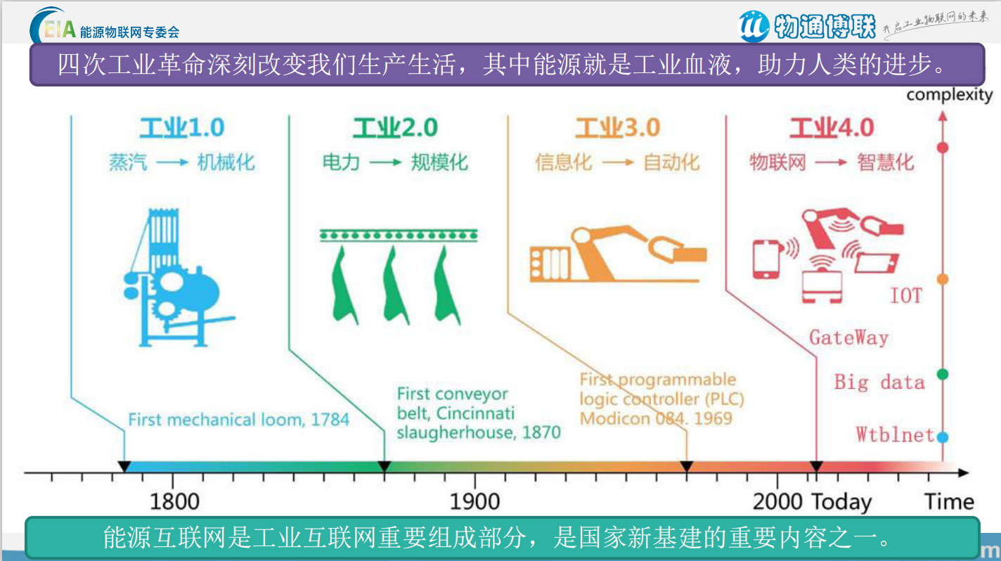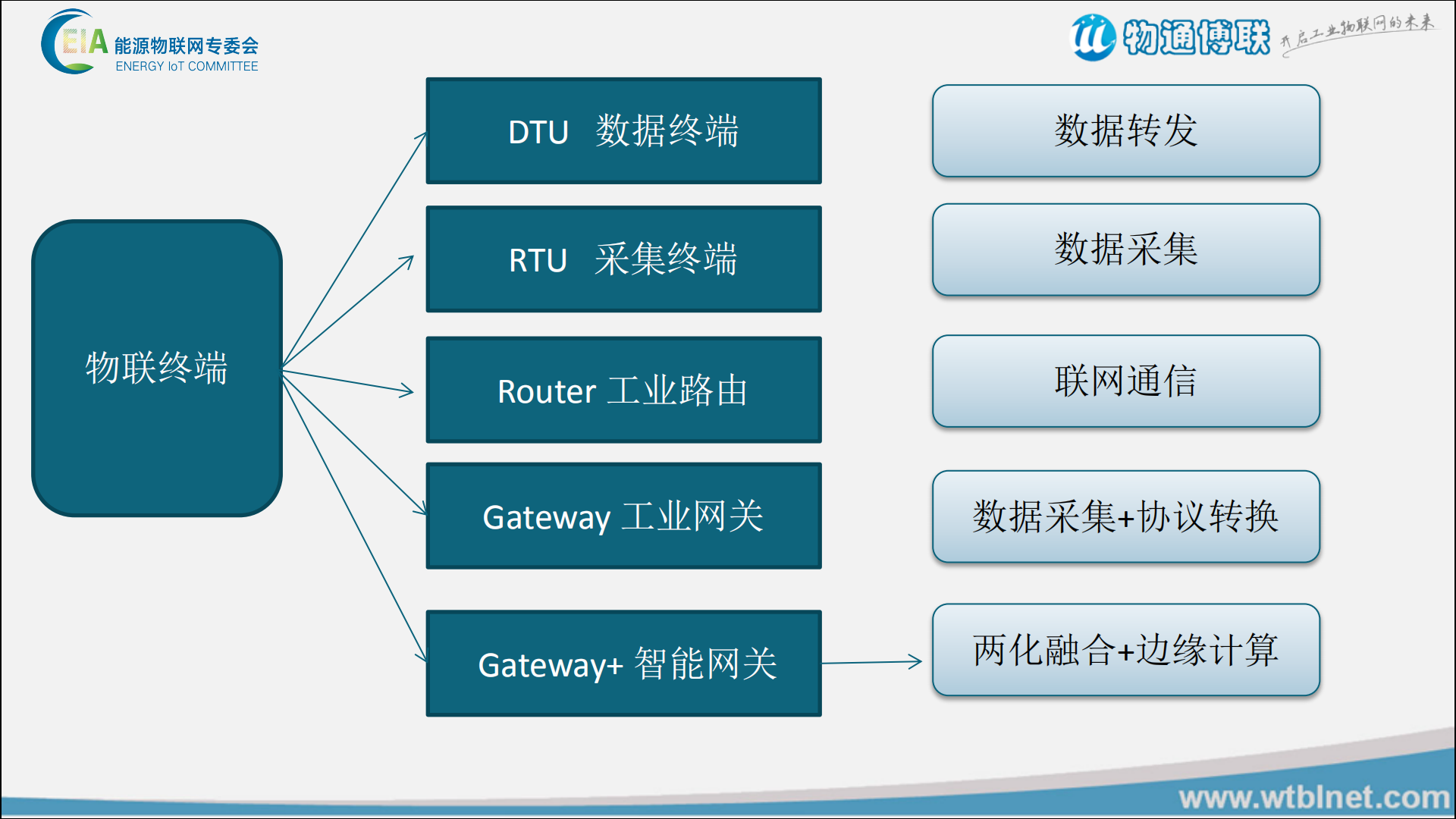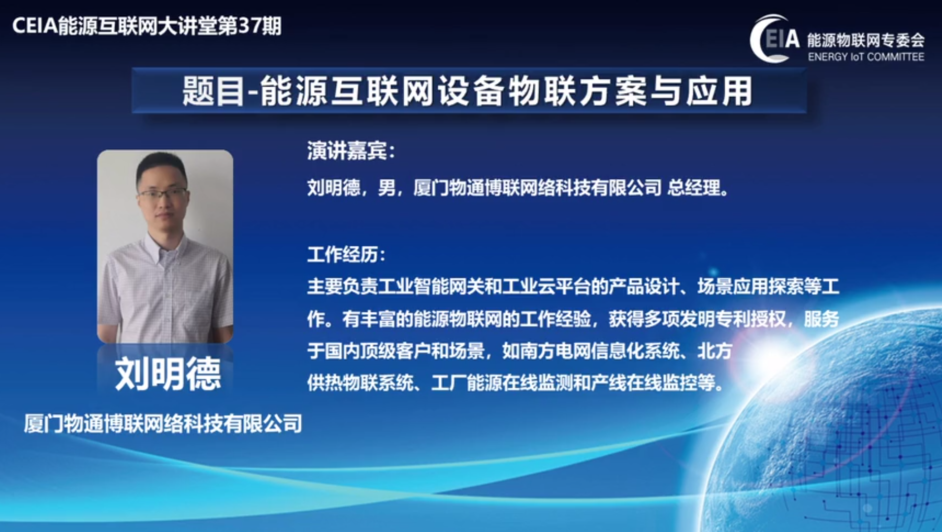 物通博聯(lián)·受邀國家能源互聯(lián)網(wǎng)產(chǎn)業(yè)及技術(shù)創(chuàng)新聯(lián)盟大講堂《能源物聯(lián)網(wǎng)》 時間:2020-09-02 17:22:22 2020年8月28日,物通博聯(lián)受邀國家能源互聯(lián)網(wǎng)產(chǎn)業(yè)及技術(shù)創(chuàng)新聯(lián)盟(CEIA)、CEIA能源物聯(lián)網(wǎng)專委會、CEIA能源數(shù)字化專委會,做專場《能源互聯(lián)網(wǎng)的設(shè)備聯(lián)網(wǎng)方案與應(yīng)用》的演講。為能源領(lǐng)域的從業(yè)者分享關(guān)于能源互聯(lián)網(wǎng)領(lǐng)域的物聯(lián)網(wǎng)解決方案和物聯(lián)網(wǎng)產(chǎn)品。 2016年8月,國家能源局批復(fù)成立國家能源互聯(lián)網(wǎng)產(chǎn)業(yè)及技術(shù)創(chuàng)新聯(lián)盟(國能科技[2016]222號),由清華大學(xué)牽頭做好國家能源互聯(lián)網(wǎng)產(chǎn)業(yè)及技術(shù)創(chuàng)新聯(lián)盟的各項組織籌備工作。 物通博聯(lián)成立于2011年是國內(nèi)專注于工業(yè)4.0應(yīng)用、工業(yè)物聯(lián)網(wǎng)產(chǎn)品研發(fā)的高科技企業(yè),在能源互聯(lián)網(wǎng)也深耕多年,特別在國家電網(wǎng)、北方供熱和智能工廠信息化建設(shè)中有豐富的經(jīng)驗和成功案例。 能源互聯(lián)網(wǎng)是新能源技術(shù)跟信息技術(shù)的深入結(jié)合為特征而催生的一種新的能源利用體系,它將能源生產(chǎn),能源消費有機(jī)結(jié)合在一起。其中物聯(lián)是基礎(chǔ),采用先進(jìn)的傳感器、智能的工業(yè)網(wǎng)關(guān)、智慧化的控制和軟件系統(tǒng),將能源生產(chǎn)端、能源消費端數(shù)以億計的設(shè)備、機(jī)器和系統(tǒng)連接起來,形成整套系統(tǒng);通過大數(shù)據(jù)、機(jī)器學(xué)習(xí)和預(yù)測提供能源效率和用能的利用率。 本次物通博聯(lián)演講主要從能源物聯(lián)網(wǎng)的需求分析、系統(tǒng)架構(gòu)、物聯(lián)產(chǎn)品和應(yīng)用案例四個方面進(jìn)行介紹分享。 能源是工業(yè)血液,伴隨工業(yè)4.0技術(shù)的應(yīng)用,能源互聯(lián)網(wǎng)也是重要組成部分。 典型的工業(yè)互聯(lián)網(wǎng)架構(gòu)(現(xiàn)場設(shè)備+工業(yè)網(wǎng)關(guān)+PASS平臺+SAAS平臺) 邊緣計算和云端計算協(xié)同,通過智能化的網(wǎng)關(guān)實現(xiàn)數(shù)據(jù)采集,通過智慧化的平臺實現(xiàn)分析 供熱系統(tǒng)的組成(熱源廠+換熱站+熱用戶) 電網(wǎng)的組成(發(fā)電+變電+配電+用電) 物聯(lián)網(wǎng)無線技術(shù)演進(jìn)(1G+2G+3G+4G+5G) 物聯(lián)網(wǎng)終端分類(Dtu->Rtu->Router->Gateway->Gatway+) 網(wǎng)關(guān)對接云平臺功能(物通博聯(lián)云平臺+自主開發(fā)云平臺、MES平臺、阿里平臺、組態(tài)王) 物通博聯(lián)·物聯(lián)網(wǎng)終端的介紹: 工業(yè)云網(wǎng)關(guān)(各種設(shè)備數(shù)據(jù)采集、4G/WIFI/以太網(wǎng)/5G /LORA聯(lián)網(wǎng),各種云平臺接入) 邊緣計算網(wǎng)關(guān)(邊緣計算、PLC數(shù)采、電表數(shù)集、水表數(shù)采、電力設(shè)備數(shù)采、IO采集) 物通博聯(lián)是一家工業(yè)智能化產(chǎn)品及應(yīng)用服務(wù)提供商,專注于為設(shè)備制造商、智能工廠及行業(yè)項目等領(lǐng)域提供智能網(wǎng)關(guān)、設(shè)備快線及應(yīng)用云平臺產(chǎn)品及方案。憑借在兩化融合、設(shè)備聯(lián)網(wǎng)、邊緣計算、大數(shù)據(jù)分析及工業(yè)建模等核心技術(shù)的積淀和優(yōu)勢,物通博聯(lián)作為工業(yè)4.0的先行者,產(chǎn)品得到國內(nèi)外頂級客戶和廣大中小企業(yè)的青睞,為客戶提供整體智能化解決方案,協(xié)助客戶實現(xiàn)數(shù)字化運營管理和工業(yè)互聯(lián)網(wǎng)新價值挖掘。 附: 【CEIA能源互聯(lián)網(wǎng)大講堂】第37期 回放視頻 演講主題:能源互聯(lián)網(wǎng)的設(shè)備物聯(lián)網(wǎng)方案及應(yīng)用 演講嘉賓:廈門物通博聯(lián)網(wǎng)絡(luò)科技有限公司 劉明德 視頻鏈接:https://v.qq.com/x/page/a3145t8271l.html 內(nèi)容大綱: 1、能源互聯(lián)網(wǎng)的需求分析 2、能源互聯(lián)網(wǎng)的系統(tǒng)架構(gòu) 3、能源互聯(lián)網(wǎng)的產(chǎn)品介紹 4、能源互聯(lián)網(wǎng)的應(yīng)用分享 上一篇:物通博聯(lián)作為工業(yè)互聯(lián)網(wǎng)先行者,受邀參加2020數(shù)字中國峰會及《工業(yè)互聯(lián)網(wǎng)論壇》 下一篇: 物通博聯(lián)在廈門兩岸股權(quán)交易中心 “閩西南科技板”成功掛牌 相關(guān)推薦 向新求質(zhì)|物通博聯(lián)獲評2024發(fā)展新質(zhì)生產(chǎn)力“影響力企業(yè)”,總經(jīng)理劉明德獲評2024發(fā)展新質(zhì)生產(chǎn)力“領(lǐng)軍人物” 2025-04-25 邀請函丨物通博聯(lián)邀您相約福州國際數(shù)字產(chǎn)品博覽會 2025-04-17 新起點,新征程|物通博聯(lián)喬遷盛典圓滿舉行,開啟未來新篇章! 2025-04-17 【邀請函】物通博聯(lián)誠邀您蒞臨深圳國際傳感器與應(yīng)用技術(shù)展覽會! 2025-03-26 相關(guān)產(chǎn)品 工業(yè)智能網(wǎng)關(guān) 物通博聯(lián)·WG系列工業(yè)智能網(wǎng)關(guān)是一款支持采集各種PLC,儀器儀表,水環(huán)保,電力設(shè)備,CNC等各種工業(yè)設(shè)備數(shù)據(jù),具有協(xié)議解析,邊緣計算的高可靠性工業(yè)智能網(wǎng)關(guān),是構(gòu)... 工業(yè)數(shù)采終端 物通博聯(lián)·WD系列工