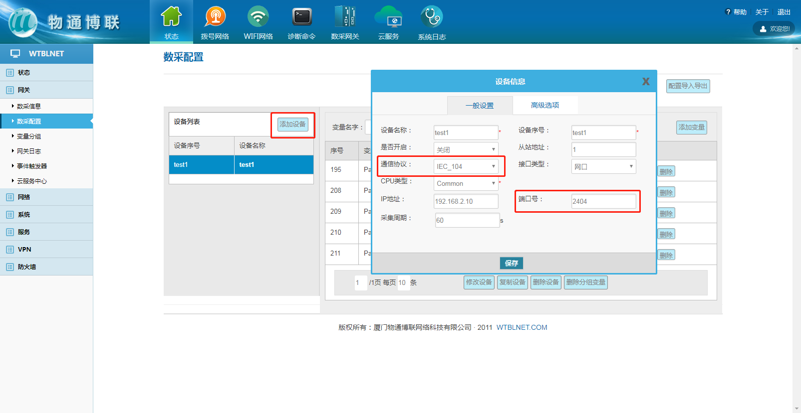 一般設(shè)置:通訊協(xié)議選擇ICE-104,端口默認(rèn)設(shè)定為2404,IP地址根據(jù)網(wǎng)關(guān)下掛設(shè)備實(shí)際情況進(jìn)行定義;