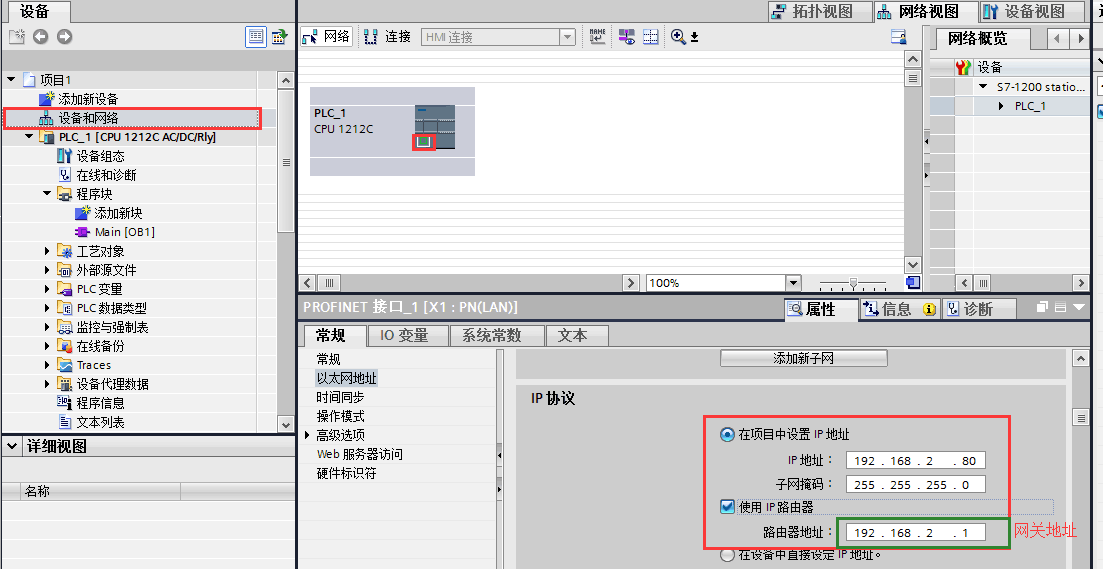 1、打開項目后,確認(rèn)Siemens控制器以太網(wǎng)參數(shù)。