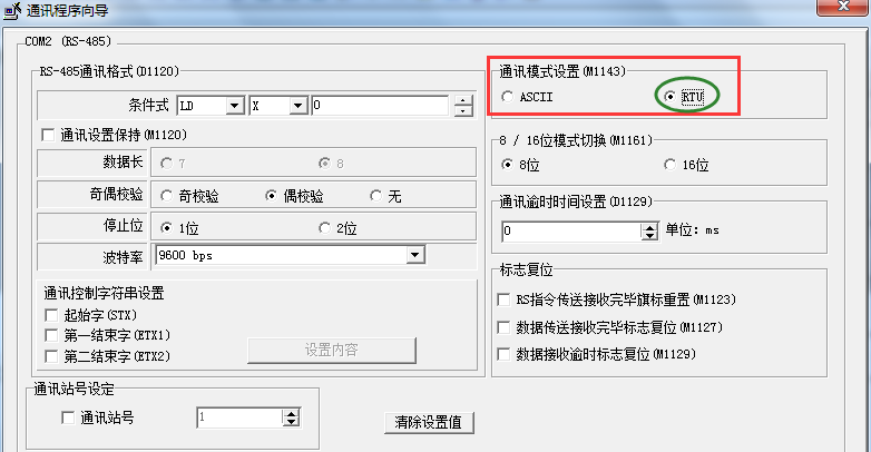 (1)通過Delta編程軟件獲取串口RS-485協(xié)議通訊參數(shù),其中通訊模式設(shè)置 RTU。