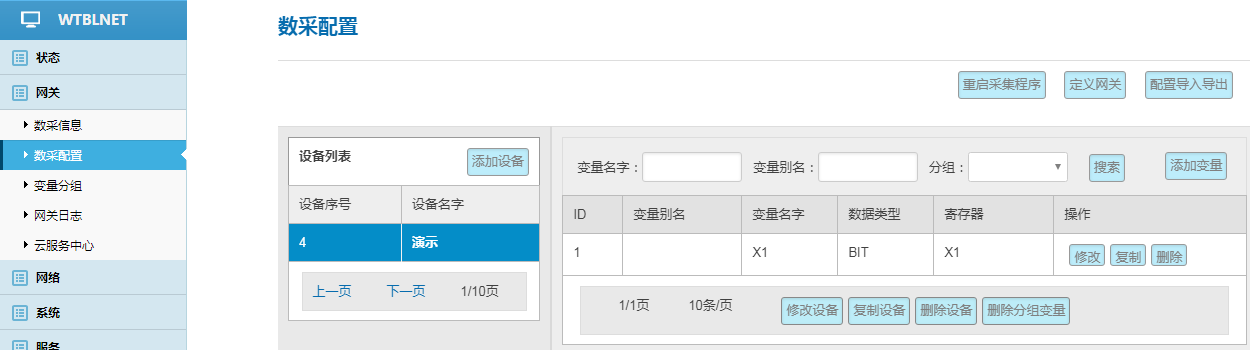 網(wǎng)關(guān)---數(shù)采配置---添加設(shè)備---添加變量---重啟采集程序并生效新的配置