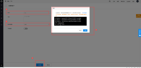 創(chuàng)建物影子后提示中的信息要記錄起來,用來后續(xù)的連接使用。