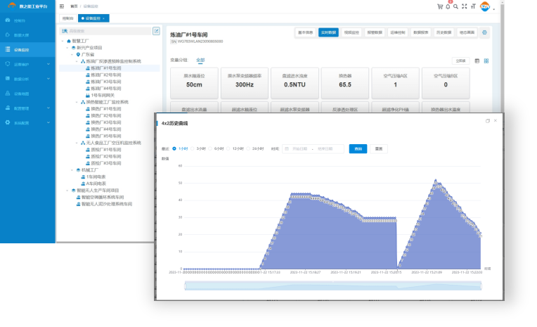 支持秒級頻率精準(zhǔn)獲取關(guān)鍵運(yùn)行參數(shù),對設(shè)備實時數(shù)據(jù)、歷史數(shù)據(jù)、報警數(shù)據(jù)、視頻監(jiān)控、工況數(shù)據(jù)等全面監(jiān)控,對設(shè)備運(yùn)行數(shù)據(jù)了如指掌。同時支持支持設(shè)備單向和多項遠(yuǎn)程控制,隨時隨地掌控設(shè)備運(yùn)行。