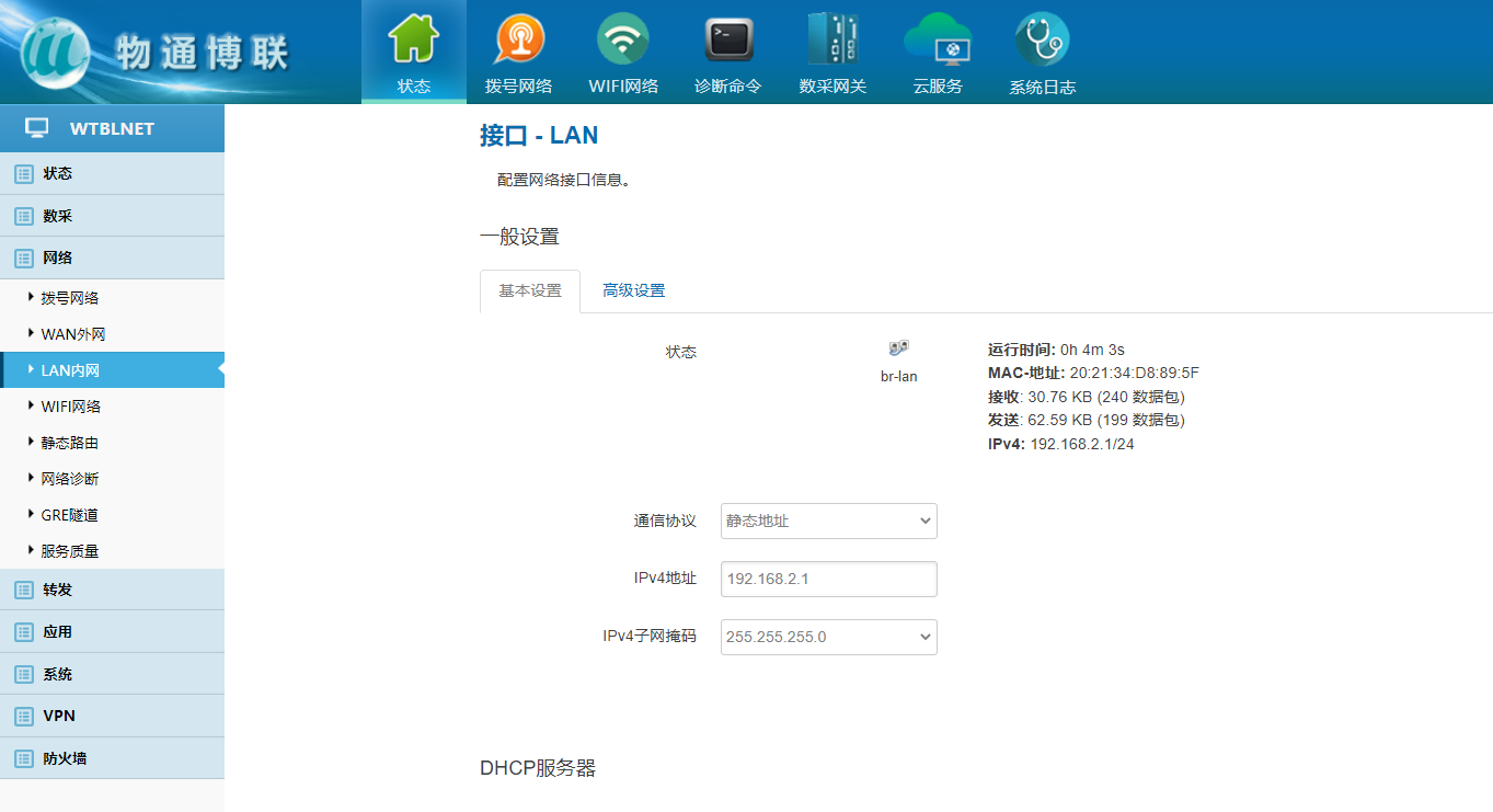 下載中心 視頻中心 常見問題 售后服務 工業(yè)網關 設備快線 數(shù)據(jù)云平臺 聯(lián)網設備 問答百科 如何修改工業(yè)智能網關的LAN口IP地址? 時間:2022-10-26 09:06:09 點擊:3790 關鍵詞:工業(yè)智能網關,LAN口 問題:如何修改工業(yè)智能網關的LAN口IP地址? 回答: (1)電腦直連網關,確保電腦與網關處于同網段或者自動獲取 瀏覽器里面輸入192.168.2.1 (2)登陸網關配置界面 默認用戶名/密碼:admin/123456 (2)選擇網絡——Lan內網——更改IPV4地址、子網掩碼,保存應用 (3)注意電腦本機IP地址是否與更改地址處于同網段(自動獲取需重新拔 插網線) (4)瀏覽器輸入更改后的IP地址登陸到網關配置界面即修改成功 上一篇:工業(yè)智能網關和DTU有什么區(qū)別嗎? 下一篇: 工業(yè)智能網關需要另外配4G路由器嗎?