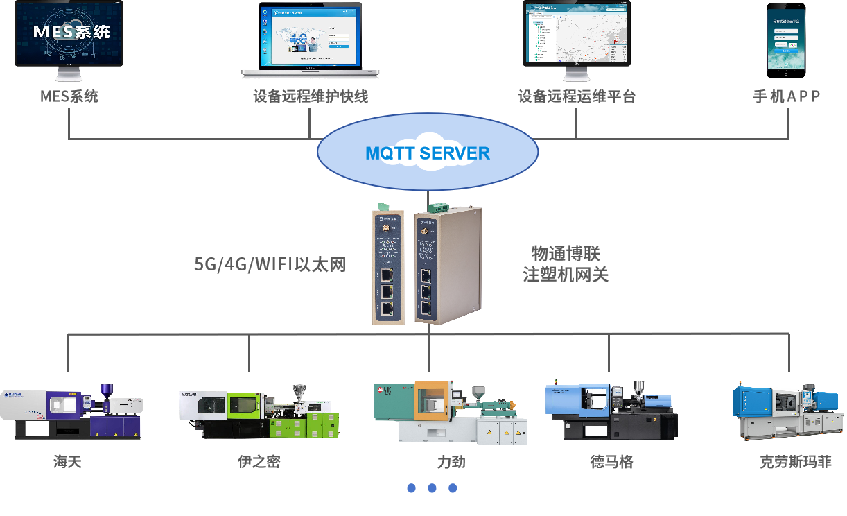 數(shù)據(jù)上云:實現(xiàn)對各種種類的注塑機設(shè)備的遠程接入、遠程管理、遠程監(jiān)控和數(shù)據(jù)應(yīng)用