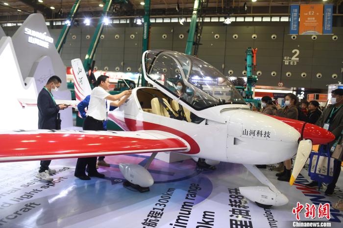 2021年5月19日,2021長沙國際工程機械展覽會上展出的飛機。(資料圖片) 中新社記者 楊華峰 攝