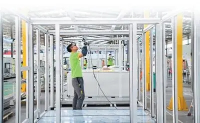 近年來,江西省大力培育專精特新企業(yè),給予企業(yè)新增融資貼息、貼保等補(bǔ)貼支持。圖為在贛州市贛縣區(qū)的一家環(huán)境科技企業(yè)內(nèi),工人在生產(chǎn)線上趕制出口國外的智能中央空調(diào)零部件。 朱海鵬攝(影像中國)