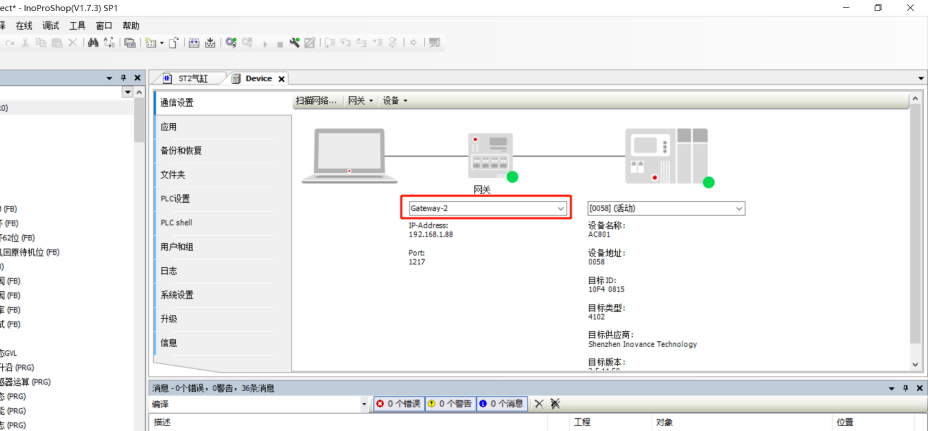1、建立通道后,打開InoProShop ,根據(jù)連接的AM600型號(hào)全稱,選擇工程型號(hào)。