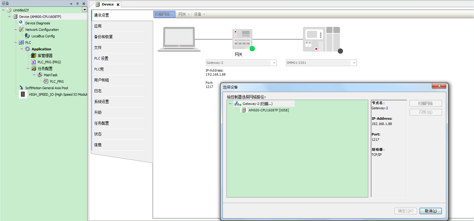 4、選擇“掃描網(wǎng)絡(luò)” ,選擇掃描到的設(shè)備,點(diǎn)擊“確定”,建立遠(yuǎn)程局域網(wǎng)通訊。
