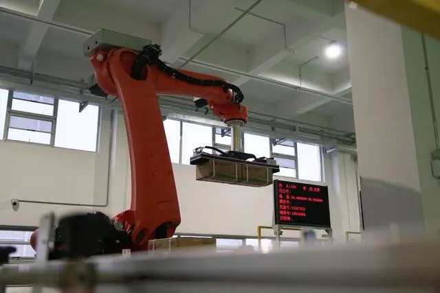 機(jī)械臂正在碼放成箱的酵母。新華社記者萬(wàn)芃琦 攝