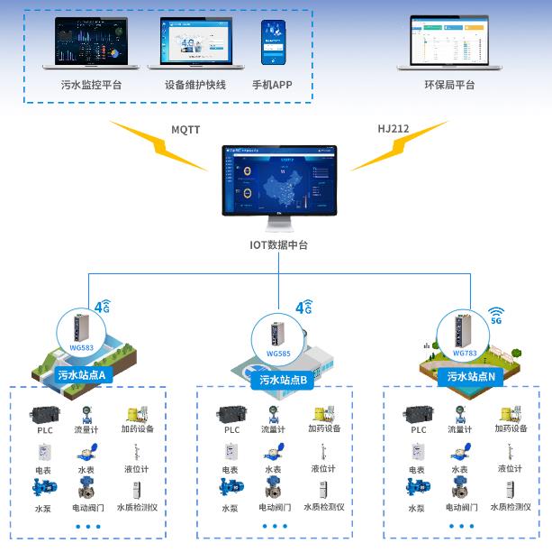 現(xiàn)要求將該水處理設(shè)備數(shù)據(jù)采集到物聯(lián)網(wǎng)平臺中,物通博聯(lián)提供高效可靠的物聯(lián)網(wǎng)解決方案。通過將物通博聯(lián)工業(yè)智能網(wǎng)關(guān)接入控制器PLC中,能夠?qū)崟r(shí)采集污水池液位、排污泵運(yùn)行狀態(tài)與工作時(shí)間、告警參數(shù)等,并通過5G/4G/WIFI/以太網(wǎng)等方式對接到物聯(lián)網(wǎng)平臺中,實(shí)現(xiàn)遠(yuǎn)程監(jiān)控、故障告警、遠(yuǎn)程控制、數(shù)據(jù)分析等功能,助力提高工作效率與管理水平。