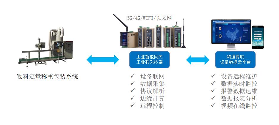 本方案以物通博聯(lián)智能數(shù)采網(wǎng)關(guān)為核心,接入控制器PLC、稱重儀表等設(shè)備,構(gòu)建物料稱重設(shè)備全生命周期監(jiān)控管理體系,實(shí)現(xiàn)稱重?cái)?shù)據(jù)實(shí)時(shí)采集、設(shè)備狀態(tài)智能監(jiān)測(cè)、異常預(yù)警與追溯管理,助力企業(yè)提升計(jì)量準(zhǔn)確性、生產(chǎn)連續(xù)性與管理合規(guī)性。