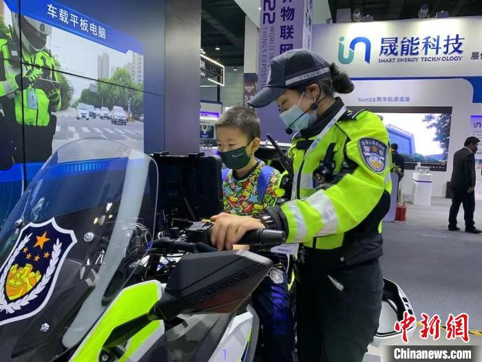 小朋友體驗搭載智能裝備的警用摩托車?!O權(quán) 攝