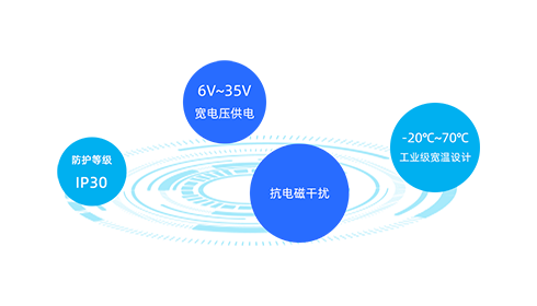 支持6V~35V寬電壓供電,-20℃~70℃工業(yè)級寬溫設計,抗電磁干擾,適應更多對供電要求和溫度要求的應用現(xiàn)場。