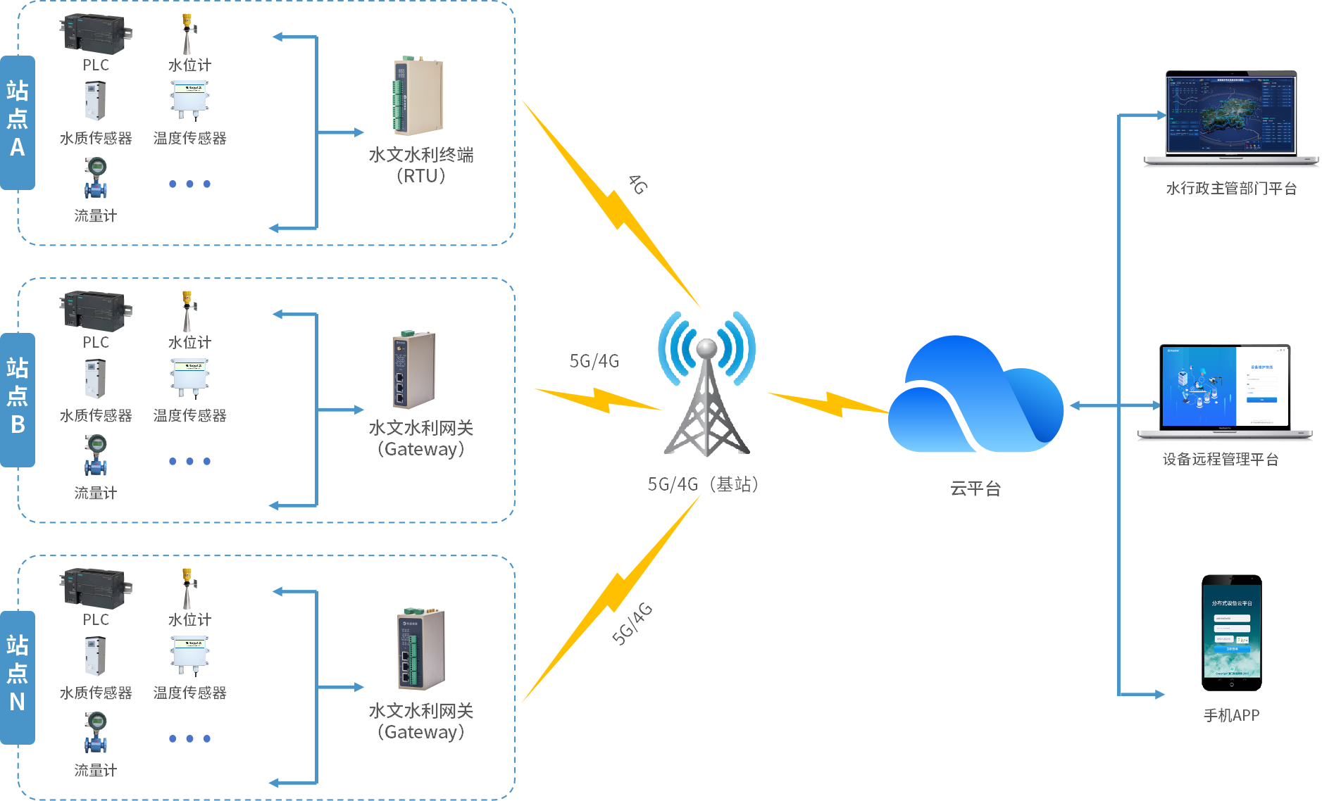 對(duì)此,物通博聯(lián)提供地下水在線監(jiān)測(cè)預(yù)警系統(tǒng)解決方案。地下水監(jiān)測(cè)井一般在野外,內(nèi)部包含水位計(jì)、流量計(jì)、水溫計(jì)、水質(zhì)監(jiān)測(cè)儀等傳感器,通過(guò)接入物通博聯(lián)水利水文網(wǎng)關(guān)(RTU)并通過(guò)5G/4G無(wú)線網(wǎng)絡(luò)遠(yuǎn)程傳輸?shù)剿姓鞴懿块T(mén)平臺(tái)中,可以實(shí)現(xiàn)對(duì)水位、水量、水溫、水質(zhì)等多種參數(shù)的實(shí)時(shí)在線監(jiān)測(cè)、超限預(yù)警、智能管理等功能,為地下水監(jiān)測(cè)管理提供高效、精準(zhǔn)、可靠的工作手段。