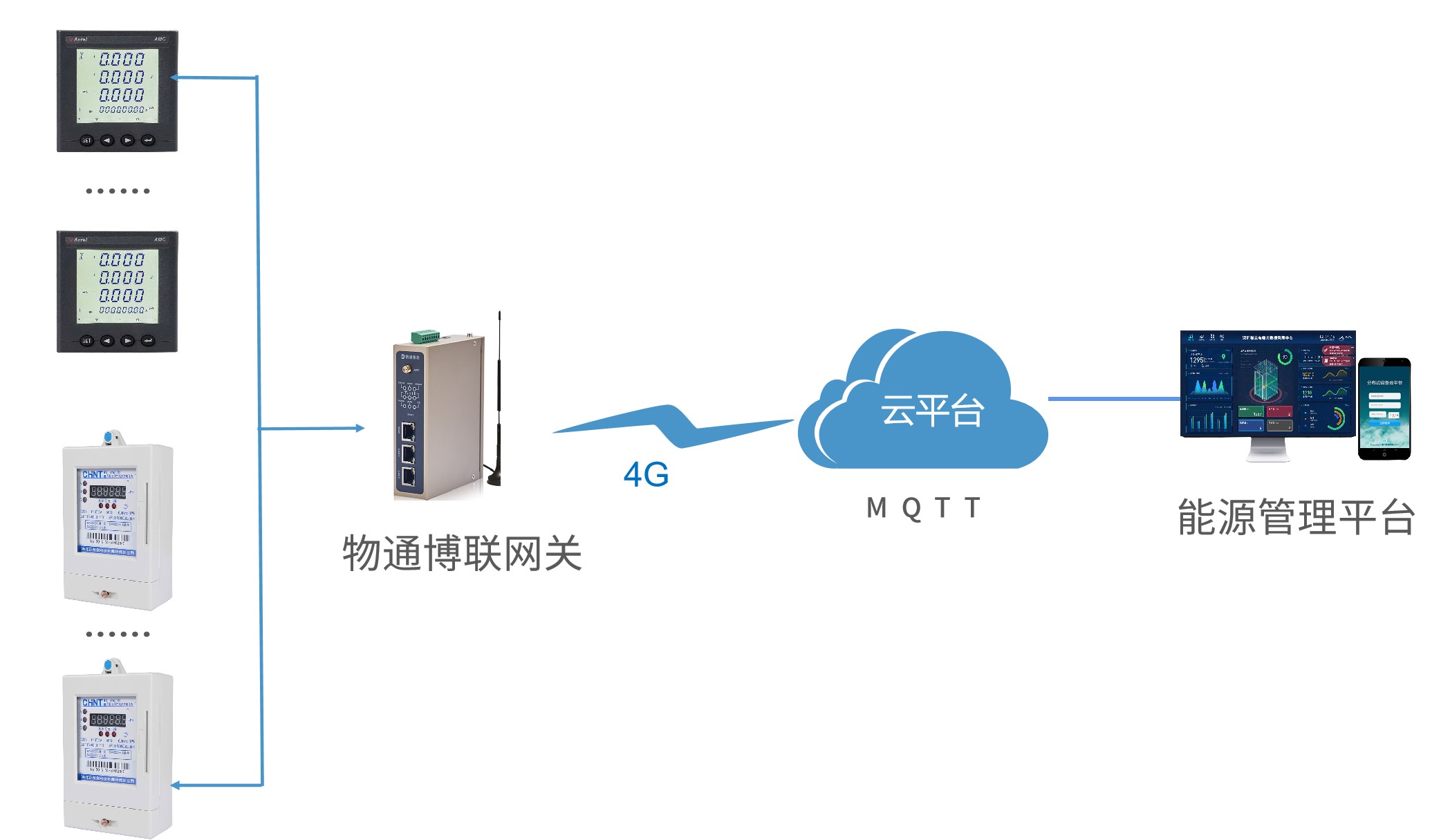 物通博聯(lián)提供產(chǎn)業(yè)園區(qū)電力能耗數(shù)采監(jiān)測(cè)物聯(lián)網(wǎng)解決方案。通過(guò)將物通博聯(lián)·工業(yè)智能網(wǎng)關(guān)部署到各個(gè)配電室現(xiàn)場(chǎng),與電表RS485串口通信連接,能夠?qū)崟r(shí)采集電力能耗數(shù)據(jù)并通過(guò)4G網(wǎng)絡(luò)傳輸?shù)街腔蹐@區(qū)能耗管理平臺(tái)中,實(shí)現(xiàn)能耗遠(yuǎn)程監(jiān)測(cè)、自動(dòng)預(yù)警、成本核算、運(yùn)維管理、數(shù)據(jù)分析等功能,為減少能耗成本、提高節(jié)能水平等提供可靠決策支持。